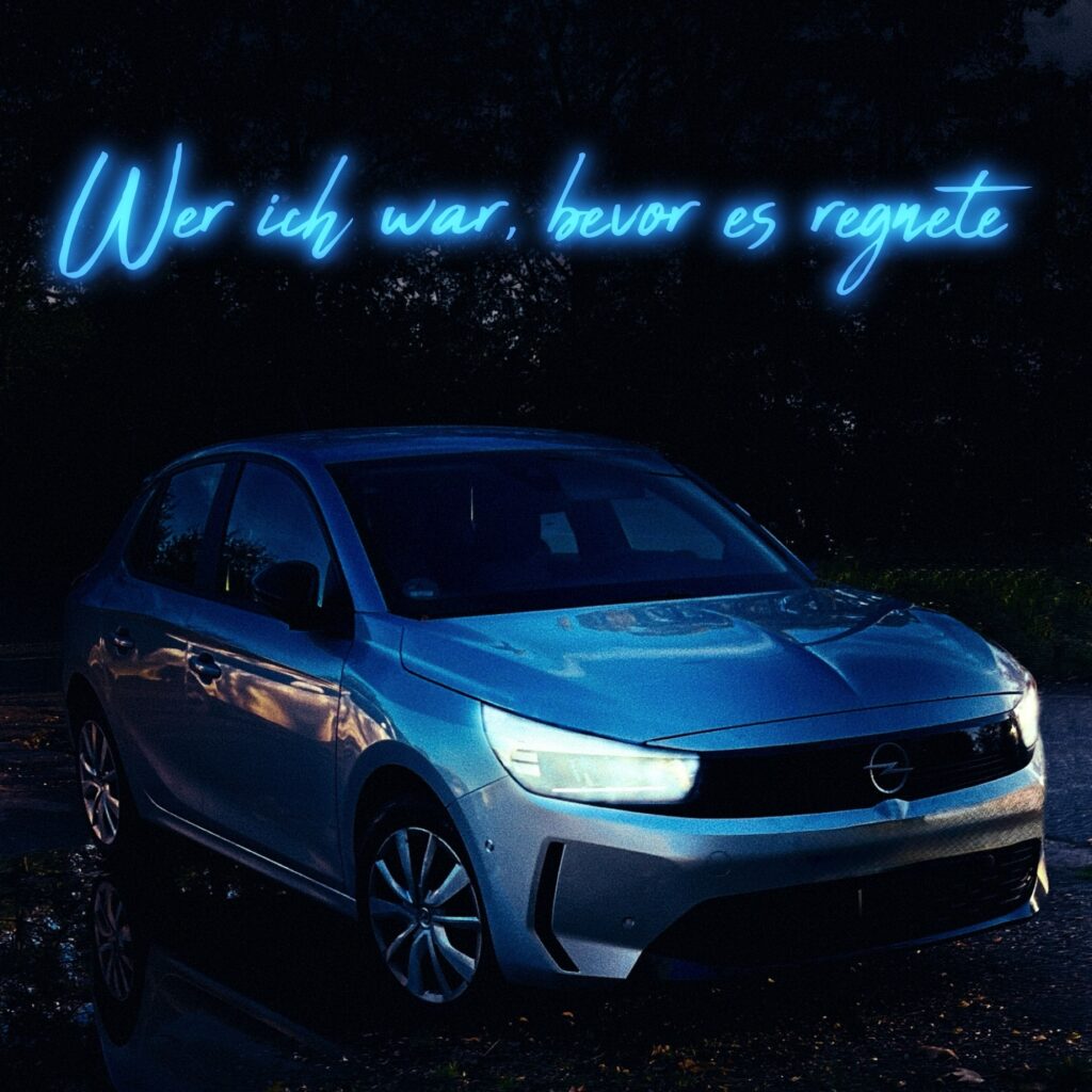 Ich bin im Auto. Das rhythmische Trommeln des Regens auf dem Metalldach holte mich langsam zurück. Das Infotainment-System leuchtete kühl im dunklen Innenraum: 2°C. Die LED-Scheinwerfer schnitten immer noch wie scharfe Schwerter durch den dichten Nebel der Novembernacht.